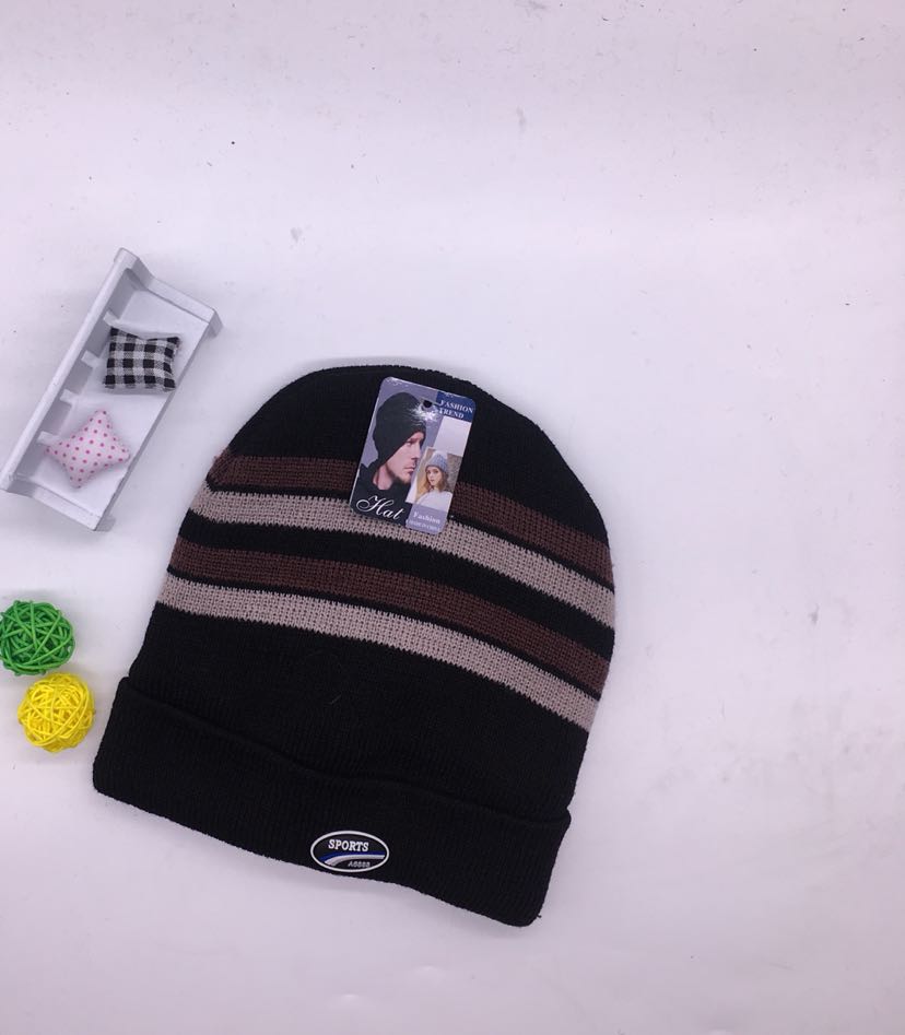 New Hat Men's Flat Machine Striped Knitted Hat Thickened And Fleece Foreign Trade Flat Woolen Hat Children All Hat